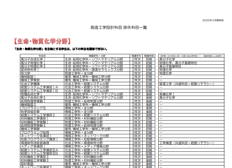 ※創造工学設計科目除外科目一覧は, こちらを参照してください。